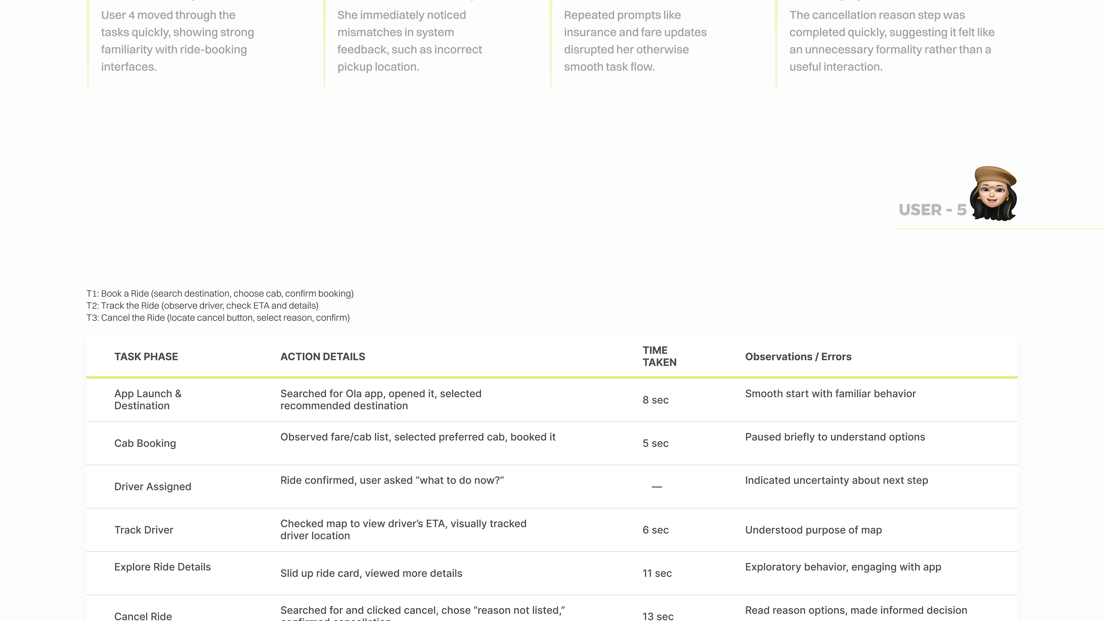 OLA Cabs: Usability Testing Report